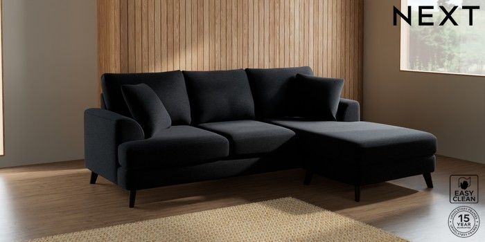 7.2.5 Buy Parker Small Sofa Chaise - Universal Fine Chenille Easy Clean Black Low Retro Tapered - Dark from the Next UK online shop Click here to use our accessible website
