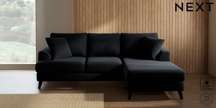 7.2.10 Buy Parker Small Sofa Chaise - Universal Fine Chenille Easy Clean Black Low Retro Tapered - Dark from the Next UK online shop Click here to use our accessible website