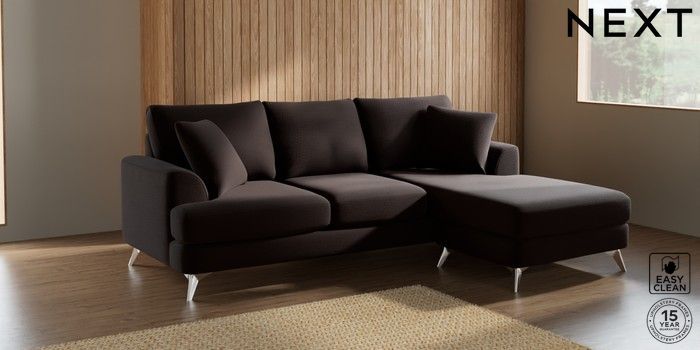 7.2.5 Buy Parker Small Sofa Chaise - Universal Fine Chenille Easy Clean Chocolate Brown High Metal - Chrome from the Next UK online shop Click here to use our accessible website