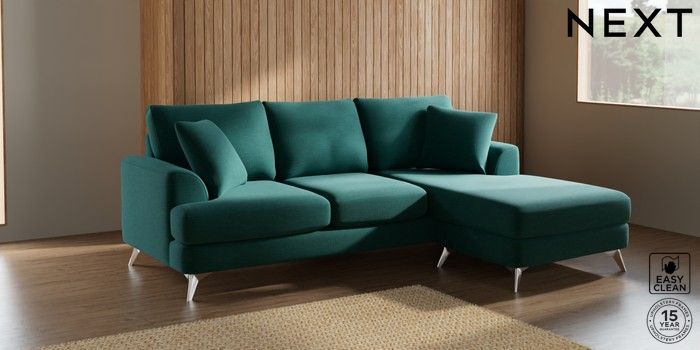 7.2.5 Buy Parker Small Sofa Chaise - Universal Fine Chenille Easy Clean Dark Juniper Green High Metal - Chrome from the Next UK online shop Click here to use our accessible website