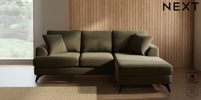 7.3.1 Buy Parker Small Sofa Chaise - Universal Fine Chenille Easy Clean Dark Moss Green High Metal - Black from the Next UK online shop Click here to use our accessible website