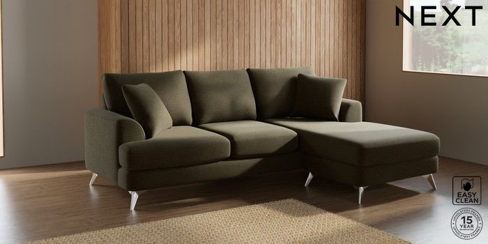 7.2.5 Buy Parker Small Sofa Chaise - Universal Fine Chenille Easy Clean Dark Moss Green High Metal - Chrome from the Next UK online shop Click here to use our accessible website
