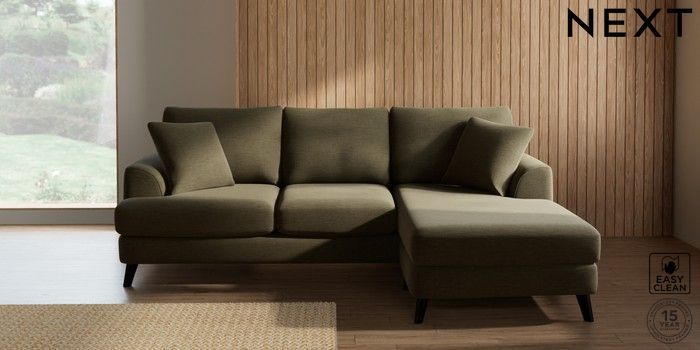 7.3.1 Buy Parker Small Sofa Chaise - Universal Fine Chenille Easy Clean Dark Moss Green Low Retro Tapered - Dark from the Next UK online shop Click here to use our accessible website