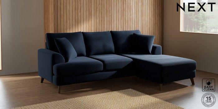 7.2.5 Buy Parker Small Sofa Chaise - Universal Fine Chenille Easy Clean Dark Navy Blue Low Retro Tapered - Mid from the Next UK online shop Click here to use our accessible website