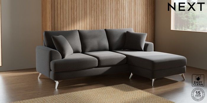 7.2.5 Buy Parker Small Sofa Chaise - Universal Fine Chenille Easy Clean Dark Smoke Grey High Metal - Chrome from the Next UK online shop Click here to use our accessible website