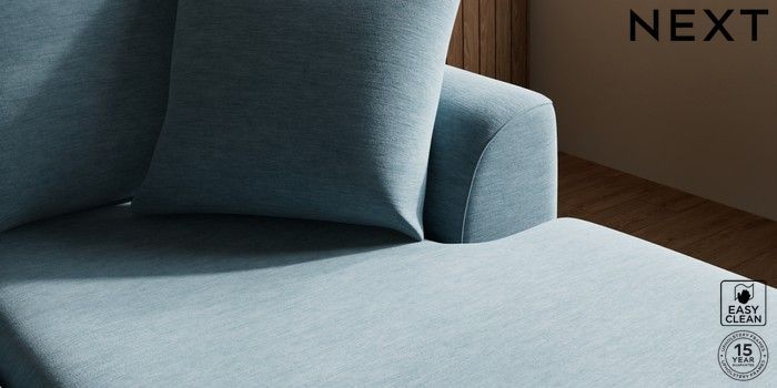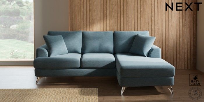 7.2.10 Buy Parker Small Sofa Chaise - Universal Fine Chenille Easy Clean Mid Blue High Metal - Chrome from the Next UK online shop Click here to use our accessible website