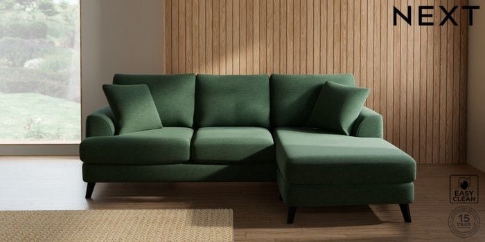 7.3.1 Buy Parker Small Sofa Chaise - Universal Fine Chenille Easy Clean Mid Khaki Green Low Retro Tapered - Dark from the Next UK online shop Click here to use our accessible website