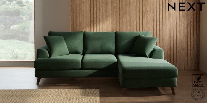 7.2.10 Buy Parker Small Sofa Chaise - Universal Fine Chenille Easy Clean Mid Khaki Green Low Retro Tapered - Mid from the Next UK online shop Click here to use our accessible website