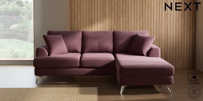 7.3.1 Buy Parker Small Sofa Chaise - Universal Fine Chenille Easy Clean Mid Mulberry Purple High Metal - Chrome from the Next UK online shop Click here to use our accessible website