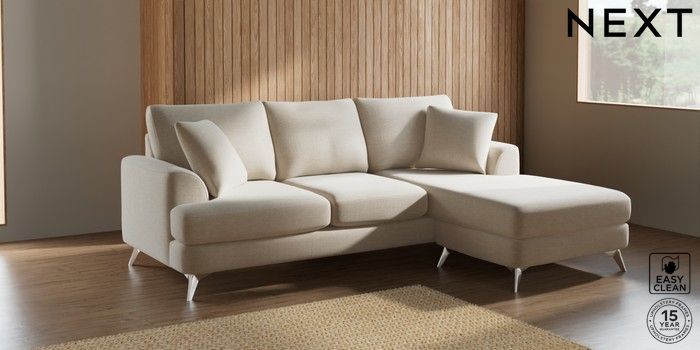 7.2.5 Buy Parker Small Sofa Chaise - Universal Fine Chenille Easy Clean Oyster High Metal - Chrome from the Next UK online shop Click here to use our accessible website