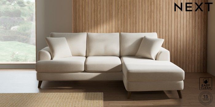 7.2.10 Buy Parker Small Sofa Chaise - Universal Fine Chenille Easy Clean Oyster Low Retro Tapered - Mid from the Next UK online shop Click here to use our accessible website