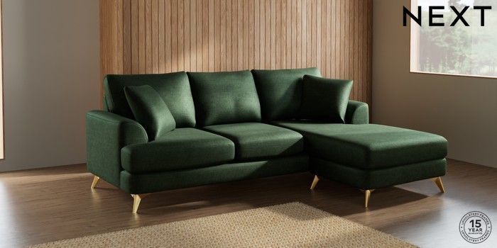 7.2.5 Buy Parker Small Sofa Chaise - Universal Luxe Chenille Dark Green High Metal - Brass from the Next UK online shop Click here to use our accessible website
