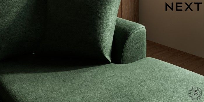 7.2.10 Buy Parker Small Sofa Chaise - Universal Luxe Chenille Dark Green High Metal - Chrome from the Next UK online shop Click here to use our accessible website