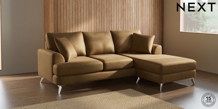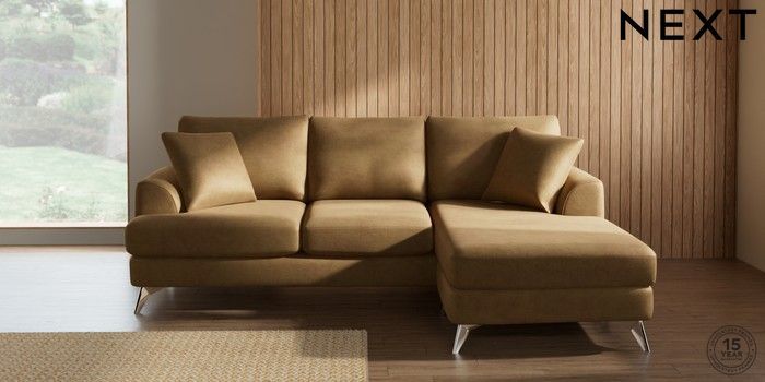 7.0.3 Buy Parker Small Sofa Chaise - Universal Luxe Chenille Honey Yellow High Metal - Chrome from the Next UK online shop Click here to use our accessible website