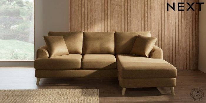 7.0.3 Buy Parker Small Sofa Chaise - Universal Luxe Chenille Honey Yellow Low Retro Tapered - Light from the Next UK online shop Click here to use our accessible website