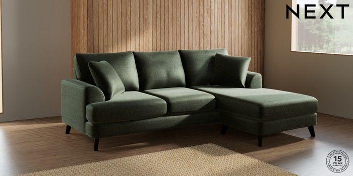7.0.3 Buy Parker Small Sofa Chaise - Universal Luxe Chenille Mid Green Low Retro Tapered - Dark from the Next UK online shop Click here to use our accessible website