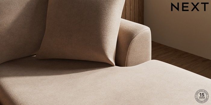 7.2.10 Buy Parker Small Sofa Chaise - Universal Luxe Chenille Mid Natural Low Retro Tapered - Dark from the Next UK online shop Click here to use our accessible website