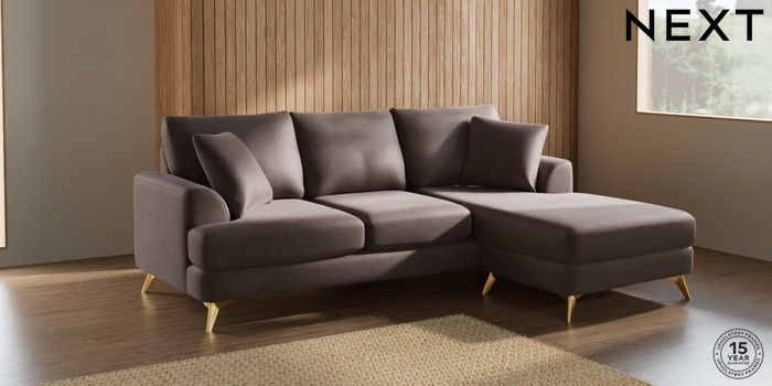 7.2.5 Buy Parker Small Sofa Chaise - Universal Luxe Chenille Mink Brown High Metal - Brass from the Next UK online shop Click here to use our accessible website