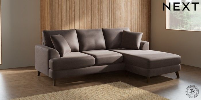 7.2.5 Buy Parker Small Sofa Chaise - Universal Luxe Chenille Mink Brown Low Retro Tapered - Mid from the Next UK online shop Click here to use our accessible website