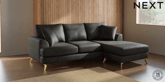 7.2.5 Buy Parker Small Sofa Chaise - Universal Plush Chenille Dark Grey High Metal - Brass from the Next UK online shop Click here to use our accessible website