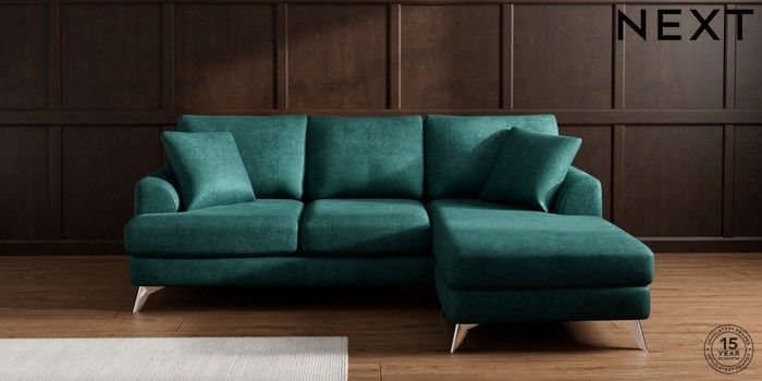 7.2.10 Buy Parker Small Sofa Chaise - Universal Plush Chenille Dark Teal Green High Metal - Chrome from the Next UK online shop Click here to use our accessible website