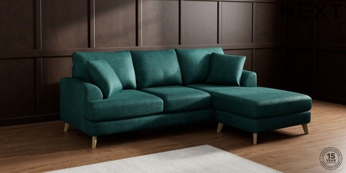 7.2.5 Buy Parker Small Sofa Chaise - Universal Plush Chenille Dark Teal Green Low Retro Tapered - Light from the Next UK online shop Click here to use our accessible website