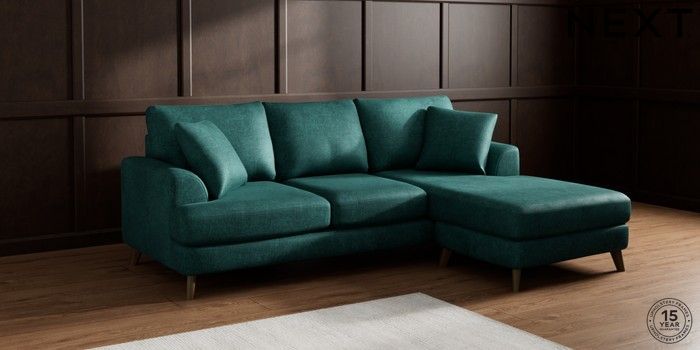 7.2.5 Buy Parker Small Sofa Chaise - Universal Plush Chenille Dark Teal Green Low Retro Tapered - Mid from the Next UK online shop Click here to use our accessible website