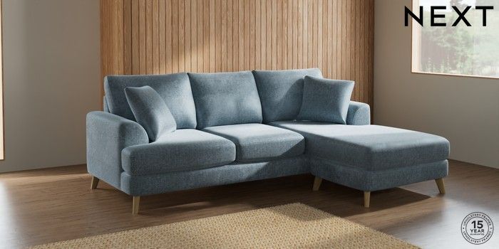 7.2.6 Buy Parker Small Sofa Chaise - Universal Plush Chenille Light Blue Low Retro Tapered - Light from the Next UK online shop Click here to use our accessible website