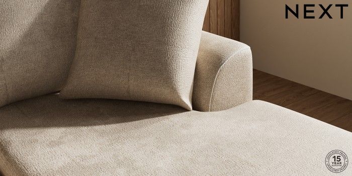 7.2.10 Buy Parker Small Sofa Chaise - Universal Plush Chenille Light Natural Low Retro Tapered - Light from the Next UK online shop Click here to use our accessible website