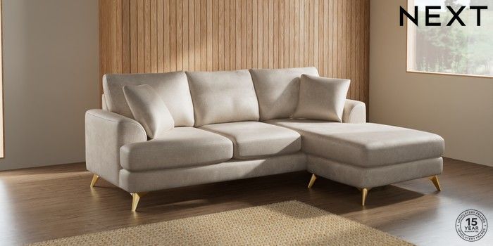 7.2.5 Buy Parker Small Sofa Chaise - Universal Plush Chenille Oyster High Metal - Brass from the Next UK online shop Click here to use our accessible website