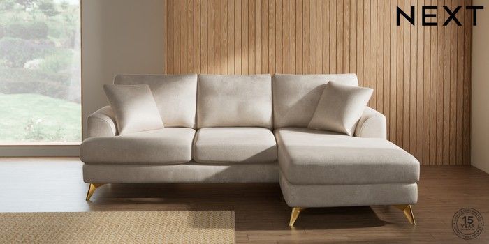 7.2.10 Buy Parker Small Sofa Chaise - Universal Plush Chenille Oyster High Metal - Brass from the Next UK online shop Click here to use our accessible website