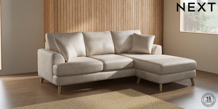 7.2.5 Buy Parker Small Sofa Chaise - Universal Plush Chenille Oyster Low Retro Tapered - Light from the Next UK online shop Click here to use our accessible website