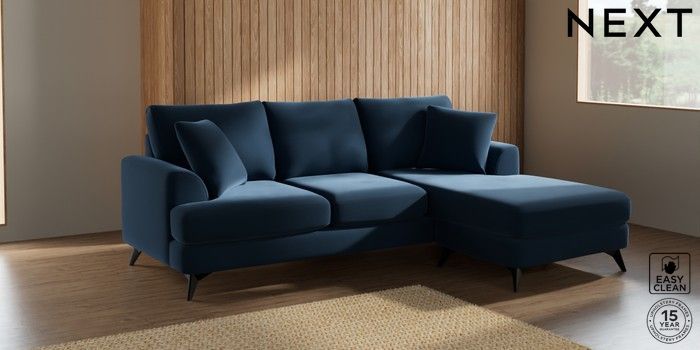 7.2.5 Buy Parker Small Sofa Chaise - Universal Plush Velvet Easy Clean Airforce Blue High Metal - Black from the Next UK online shop Click here to use our accessible website