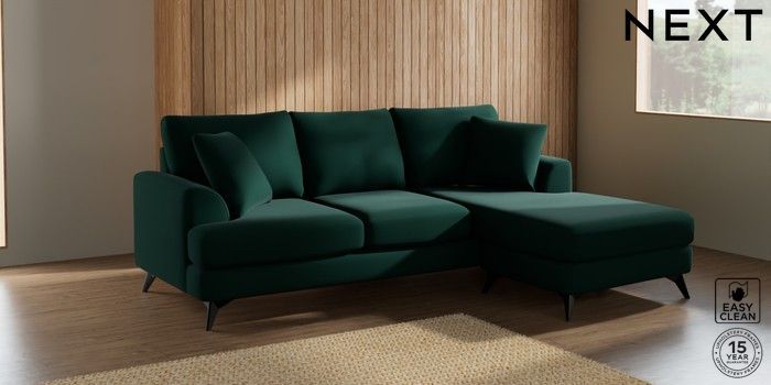 7.2.5 Buy Parker Small Sofa Chaise - Universal Plush Velvet Easy Clean Bottle Green High Metal - Black from the Next UK online shop Click here to use our accessible website