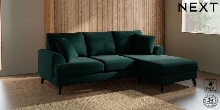 7.2.5 Buy Parker Small Sofa Chaise - Universal Plush Velvet Easy Clean Bottle Green Low Retro Tapered - Dark from the Next UK online shop Click here to use our accessible website