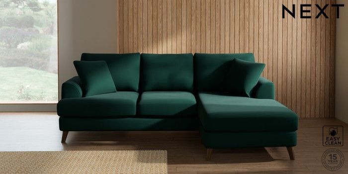 7.2.10 Buy Parker Small Sofa Chaise - Universal Plush Velvet Easy Clean Bottle Green Low Retro Tapered - Mid from the Next UK online shop Click here to use our accessible website