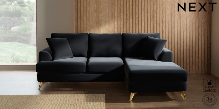 7.3.1 Buy Parker Small Sofa Chaise - Universal Plush Velvet Easy Clean Charcoal Grey High Metal - Brass from the Next UK online shop Click here to use our accessible website
