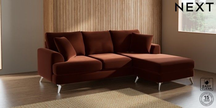 7.2.5 Buy Parker Small Sofa Chaise - Universal Plush Velvet Easy Clean Ginger Orange High Metal - Chrome from the Next UK online shop Click here to use our accessible website