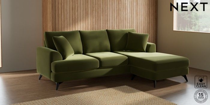 7.2.5 Buy Parker Small Sofa Chaise - Universal Plush Velvet Easy Clean Mid Olive Green High Metal - Black from the Next UK online shop Click here to use our accessible website