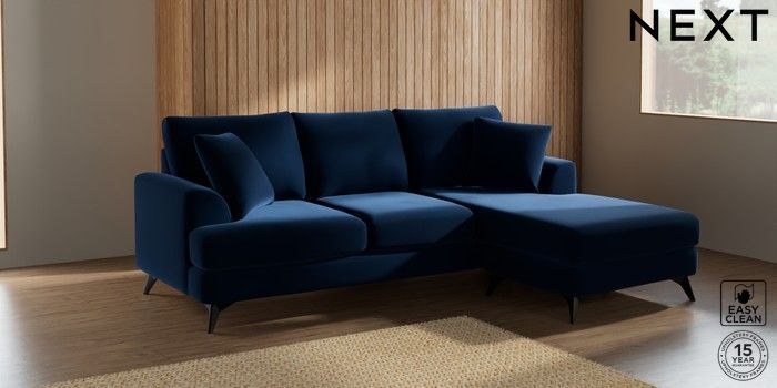 7.2.5 Buy Parker Small Sofa Chaise - Universal Plush Velvet Easy Clean Navy Blue High Metal - Black from the Next UK online shop Click here to use our accessible website