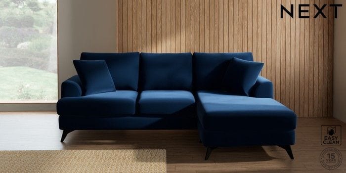 7.3.1 Buy Parker Small Sofa Chaise - Universal Plush Velvet Easy Clean Navy Blue High Metal - Black from the Next UK online shop Click here to use our accessible website