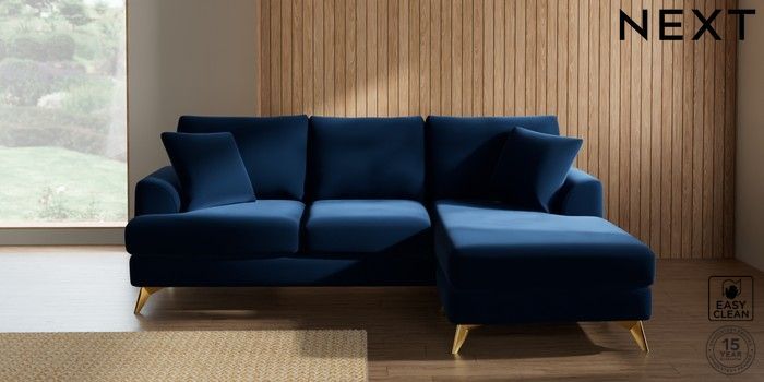 7.3.1 Buy Parker Small Sofa Chaise - Universal Plush Velvet Easy Clean Navy Blue High Metal - Brass from the Next UK online shop Click here to use our accessible website