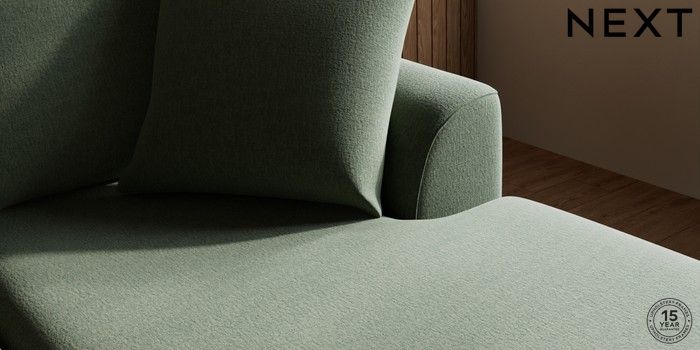 7.3.1 Buy Parker Small Sofa Chaise - Universal Relaxed Linen Look Dark Green High Metal - Chrome from the Next UK online shop Click here to use our accessible website