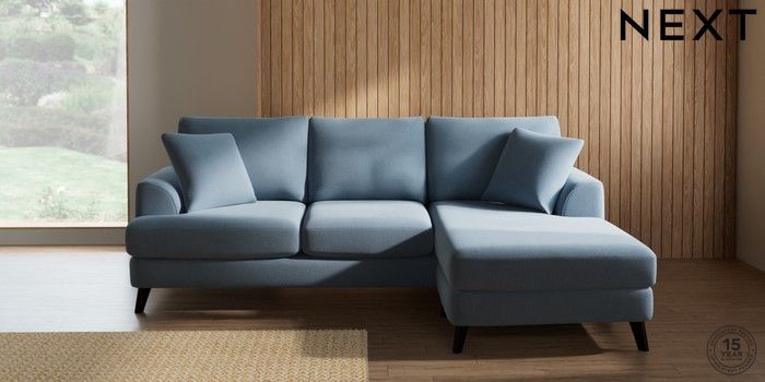7.3.1 Buy Parker Small Sofa Chaise - Universal Relaxed Linen Look Mid Blue Low Retro Tapered - Dark from the Next UK online shop Click here to use our accessible website