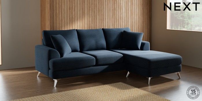 7.0.3 Buy Parker Small Sofa Chaise - Universal Ripple Chenille Dark Blue High Metal - Chrome from the Next UK online shop Click here to use our accessible website