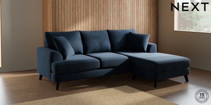 7.0.3 Buy Parker Small Sofa Chaise - Universal Ripple Chenille Dark Blue Low Retro Tapered - Dark from the Next UK online shop Click here to use our accessible website