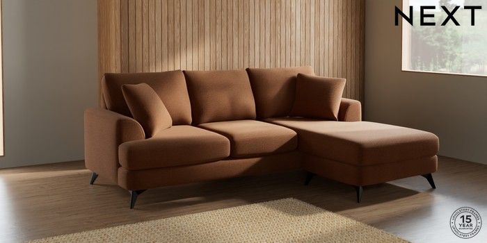 7.2.5 Buy Parker Small Sofa Chaise - Universal Ripple Chenille Mid Rust Brown High Metal - Black from the Next UK online shop Click here to use our accessible website