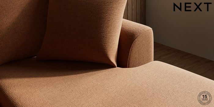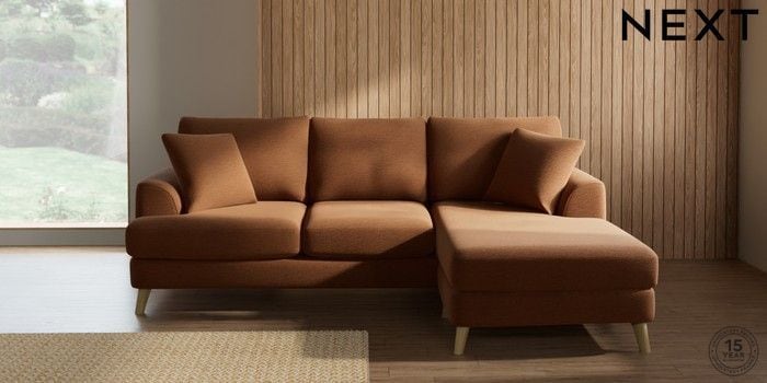 7.2.10 Buy Parker Small Sofa Chaise - Universal Ripple Chenille Mid Rust Brown Low Retro Tapered - Light from the Next UK online shop Click here to use our accessible website
