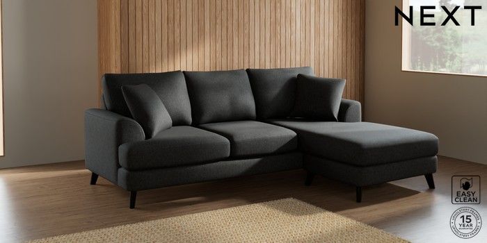 7.2.5 Buy Parker Small Sofa Chaise - Universal Tweedy Blend Easy Clean Charcoal Grey Low Retro Tapered - Dark from the Next UK online shop Click here to use our accessible website