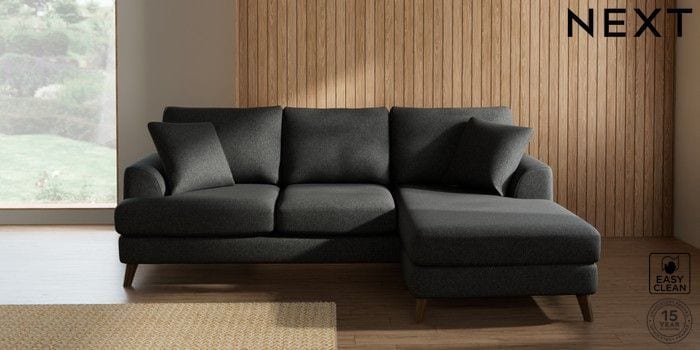 7.2.10 Buy Parker Small Sofa Chaise - Universal Tweedy Blend Easy Clean Charcoal Grey Low Retro Tapered - Mid from the Next UK online shop Click here to use our accessible website